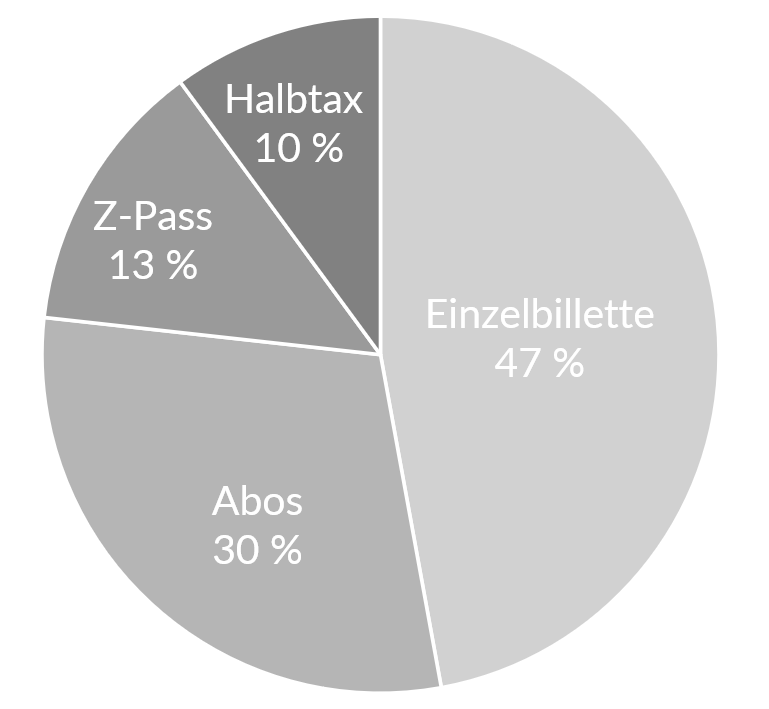 | 2022 | Die Umsätze OSTWIND und Z-Pass sind leicht unter dem Niveau von 2019, die Anteile aus dem Halbtaxabo darüber. | |